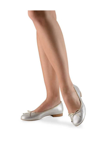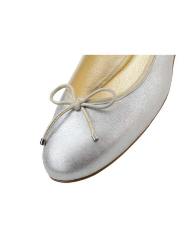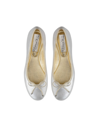 Ces ballerines se déclinent dans des teintes estivales d'argent métallique satiné et de nude. Fabriquées près de Florence en daim doux comme un gant, elles sont dotées d'un nœud subtilement coloré et d'un fin liseré de maintien.
