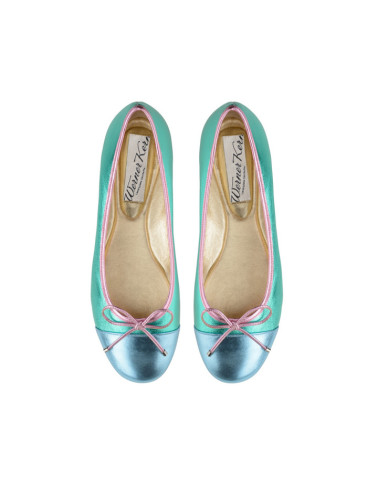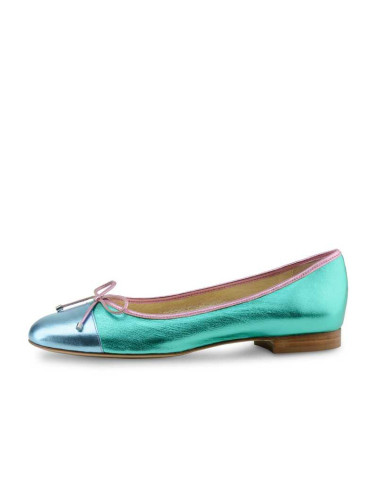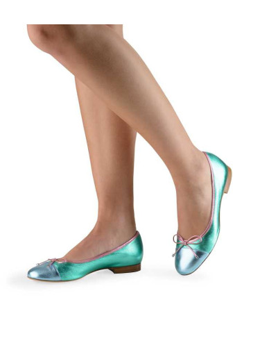 Ce modèle de conte de fées est indispensable pour un look printanier délicat. Ces ballerines de couleur pastel ont été fabriquées à la main en cuir nappa laminé doux comme un gant près de Florence.