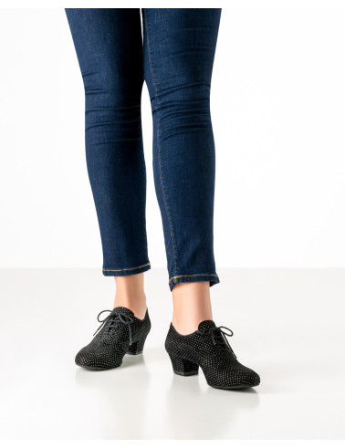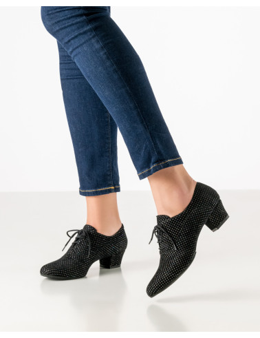 Chaussures de danse en daim imprimé et brocart noir - Runa - Werner Kern