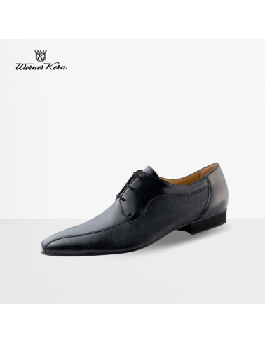 Chaussures pour homme en cuir noir avec les côtés perforés de la marque Werner Kern. Idéales pour les danses de salon et dotées d'un laçage 3 trous.