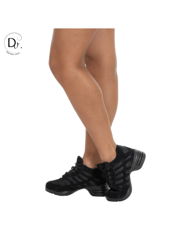 Baskets de danse avec semelles amortissantes. Parfaites pour protéger le danseur. Les sneakers offrent un excellent confort et une souplesse accrue pour la réalisation de figures de danse en intérieur et en extérieur. Elle détiennent sur le dessus une matière en microfibre combiné avec du daim de haute qualité.