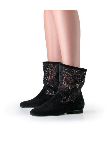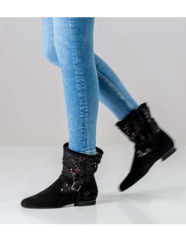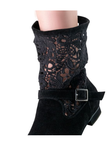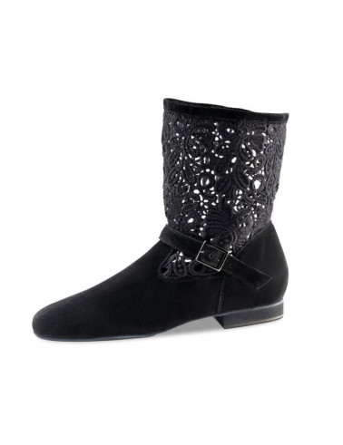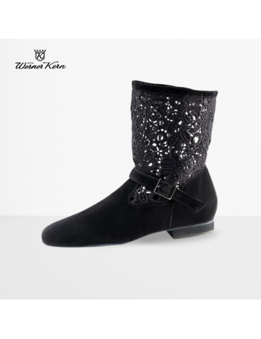 Cette bottine vous fera glisser dans la soirée avec danse et style. Botte de danse Werner Kern infiniment confortable en cuir velours souple combiné à un tissu fin et transparent. La sangle de cou-de-pied réglable individuellement offre un soutien parfait et une grande sécurité dans la danse.