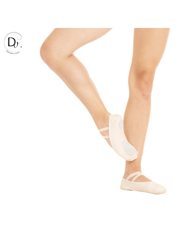 Les demi-pointes Nina sont fabriquées en toile, et détiennent une bi-semelle extérieure en suède pour apporter plus de souplesse. Elles détiennent des contours élastiques et d'une semelle intérieure en suède. Elles sont adaptées à tous les niveaux.
